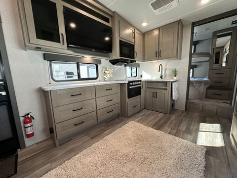 The 27BH configuration is ideal for larger families or those who enjoy traveling with friends, thanks to its spacious bunkhouse that provides cozy and comfortable sleeping quarters for children or additional guests. This feature ensures that everyone has their own dedicated space, making it a perfect home away from home during long trips or weekend getaways. A bunkhouse is really the only choice for any long term RV-livers with families.